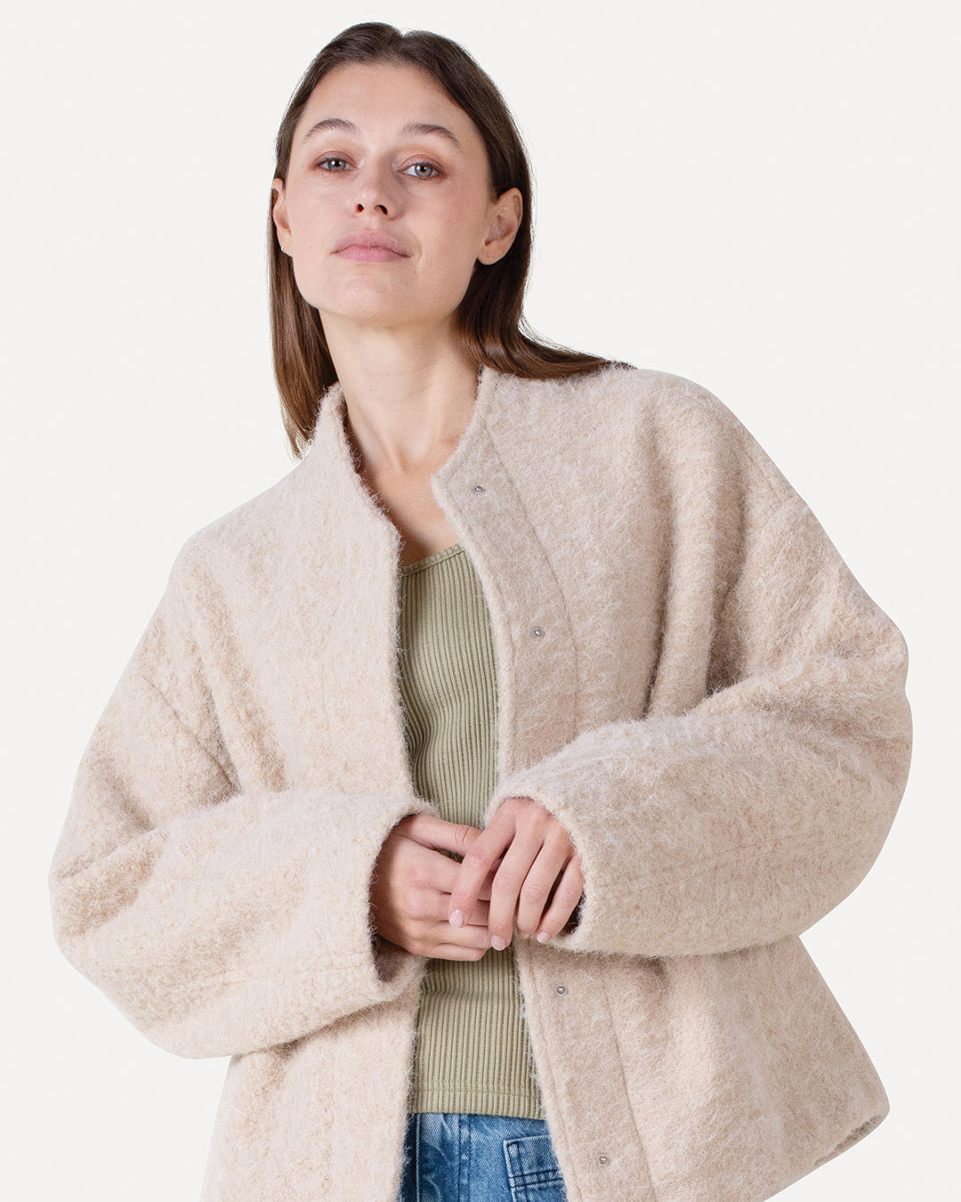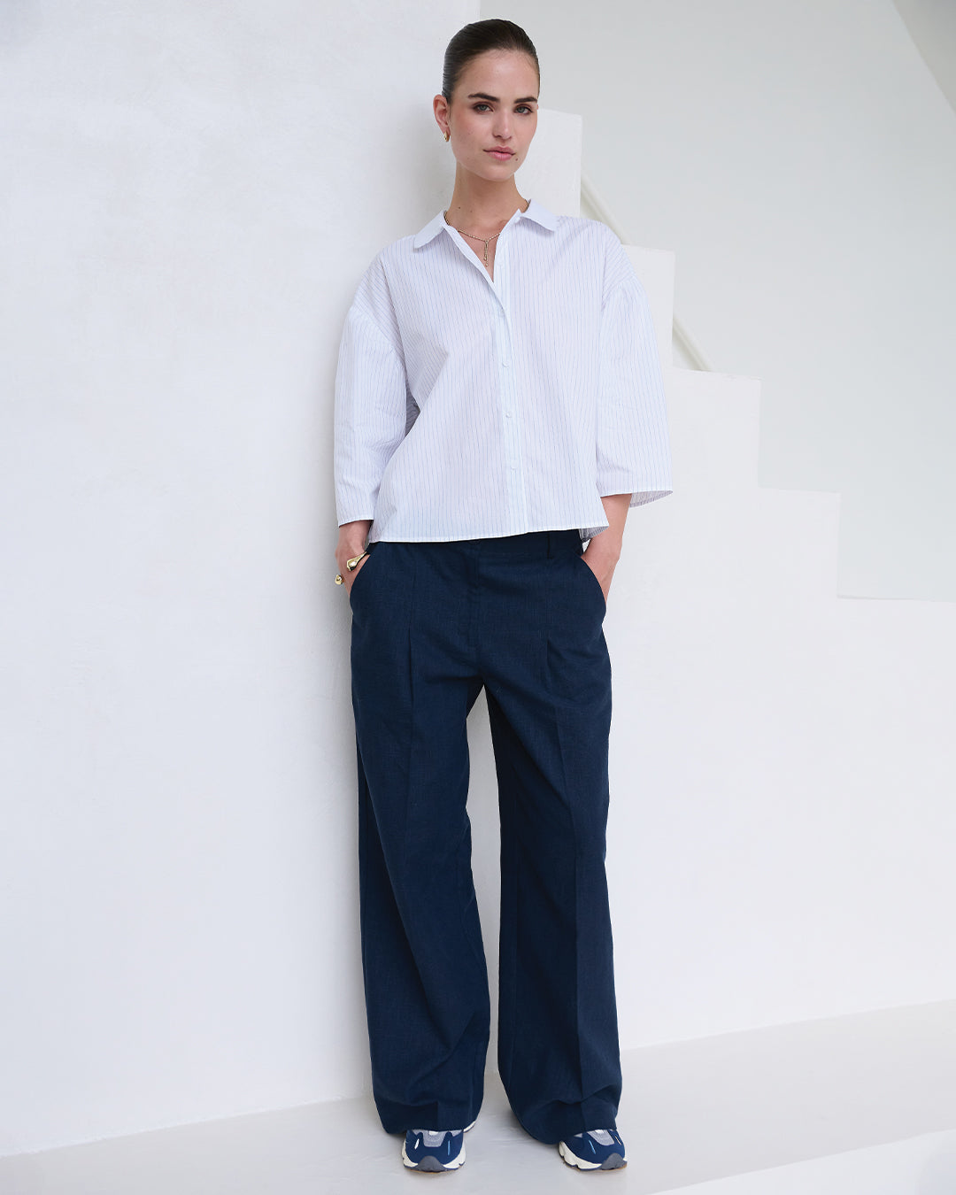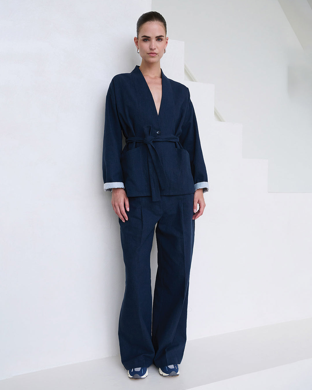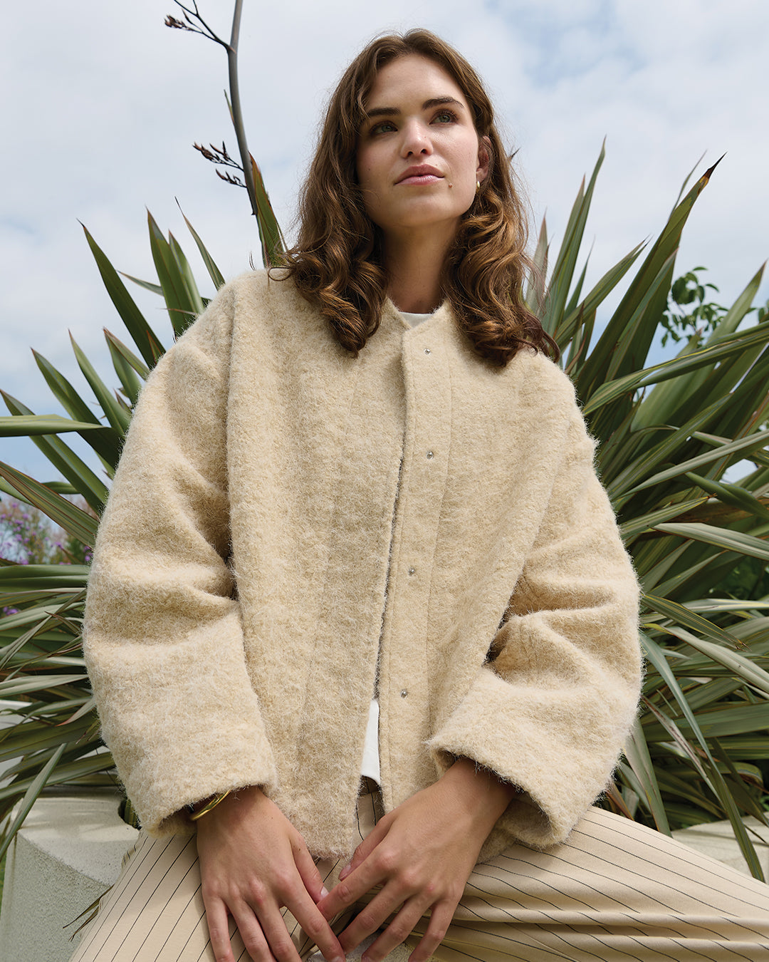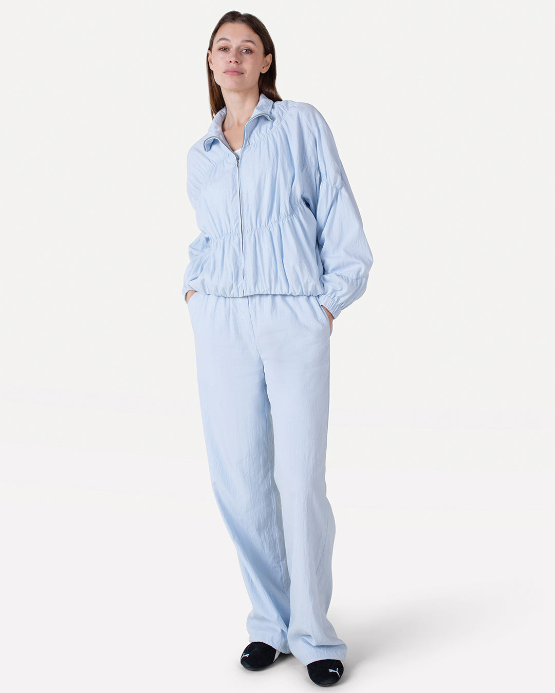 We soaked up the island’s laid-back rhythm, its sailing spirit, and vintage charm and turned it into a wardrobe for the modern explorer. Think balloon-shaped jackets echoing sail shapes in the wind, bold double denim sets, and striped jerseys reworked into statement sweats and tees. Lightweight ramie adds effortless movement, while our signature Moore pants is transformed into a track pants in a lyocell quality with a sleek nylon look. There’s a hint of nostalgia to vintage-inspired pastels and a delicate burnout flower motif.